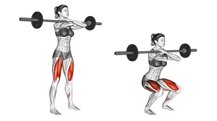 Beanspruchte Muskeln beim Front Squat (Frontkniebeuge).