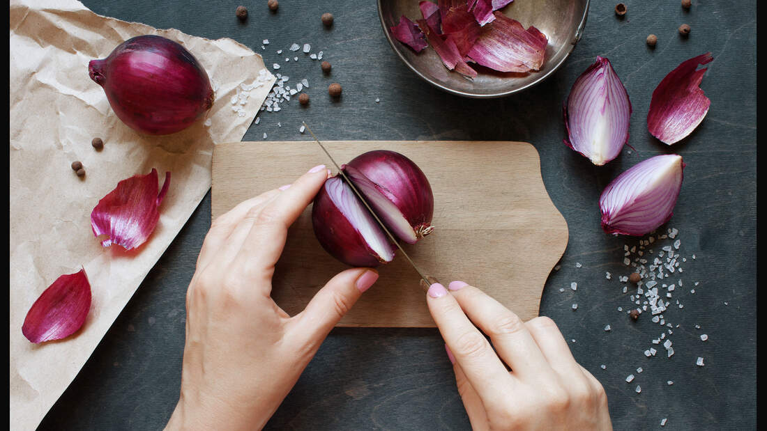 Zwiebeltee: Hast du gewusst, dass auch Zwiebeln den Schleim lösen können? Außerdem enthalten sie schwefelhaltige Senföle, die desinfizierend wirken. Für den Tee schneidest du eine Zwiebel in Scheiben und lässt sie in einem halben Liter Wasser 5 Minuten lang kochen. Mit einem Sieb den Sud abgießen. Dann unbedingt heiß trinken!